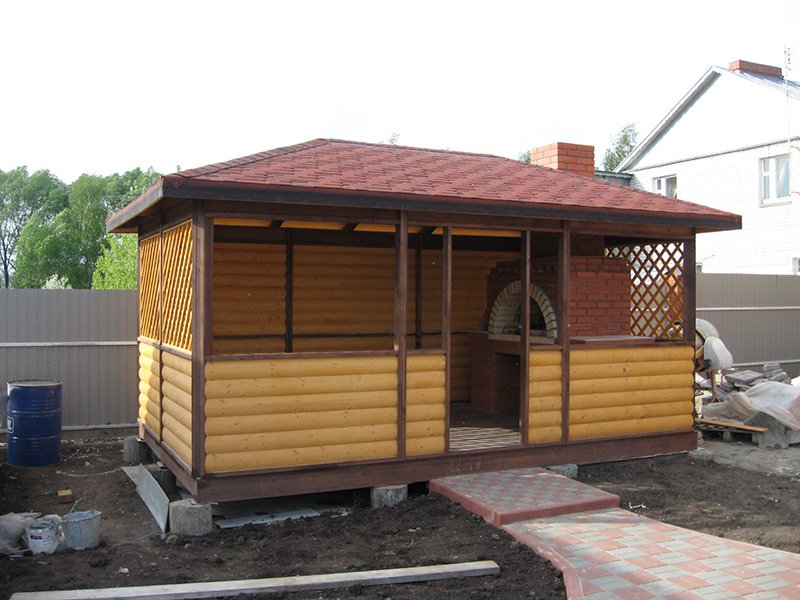 Если вы не планируете в дальнейшем производить остекление и капитальное утепление беседки, то можно вполне обойтись обычной крышей без каких-либо изысков.