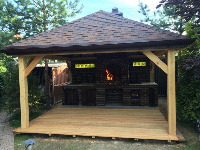 - Приготовление мяса внутри беседки — тогда оборудуется полноценный печной комплекс капитального строения.