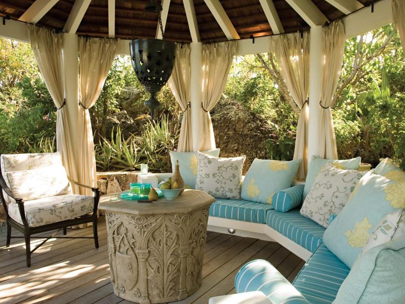 Помещение должно просматриваться со всех сторон. Оно не должно быть пустым, но и захламлять его тоже не стоит — вы должны размеренно передвигаться по беседке, любоваться мелкими деталями и, в случае необходимости, присесть на раритетную или состаренную мебель.