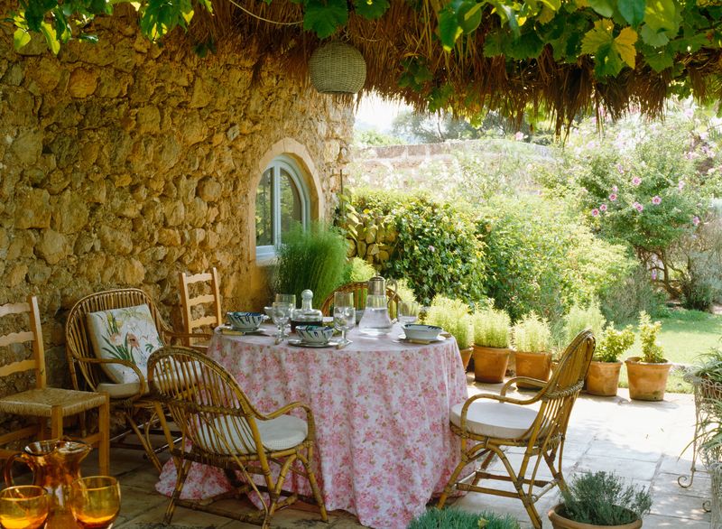 Как ни странно, но стиль прованс крайне поощряет наш российский подход к обустройству дачных беседок: старая мебель, наличие сколов и потертостей и «Second Hand» априори. Поэтому большинству дачных жителей даже выдумывать сильно не придется, основные элементы декора у них уже есть.