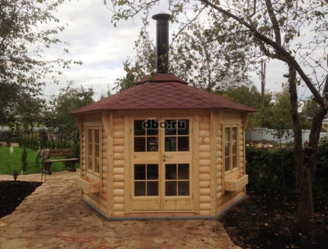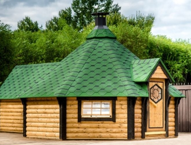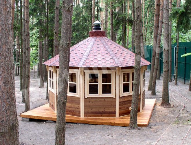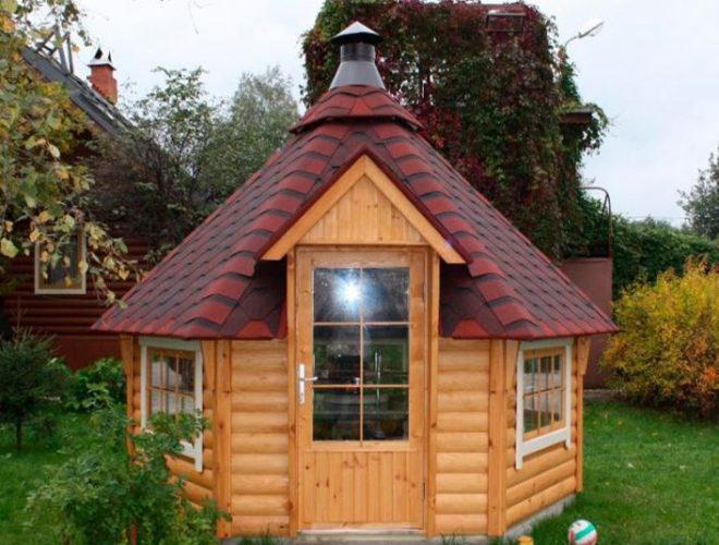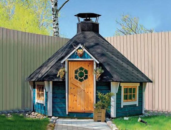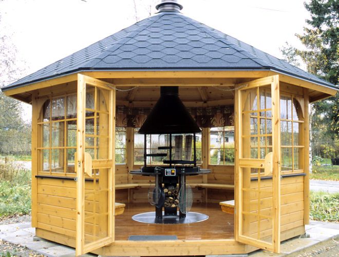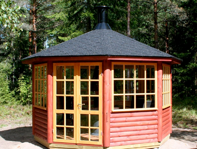 Гриль беседка или финский домик — закрытая беседка с очагом и дымоотводом в центре, внутри которой можно одновременно отдыхать компанией людей и готовить мясо на открытом огне.