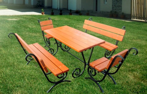 Очень красиво смотрятся лавочки с коваными вставками (варианты кованой мебели для сада представлены в нашей статье). |