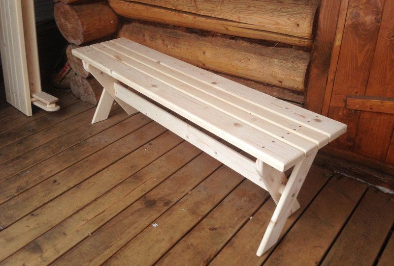 Смысл деревянных скамеек и лавок примерно один и тот же — посадить людей на ровную поверхность, чтобы было удобно и безопасно. В зависимости от вашего желания, можно в конструкцию лавки можно добавить спинку, тогда посиделки будут более удобными (хотя это и не всегда уместно).