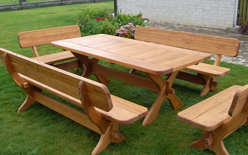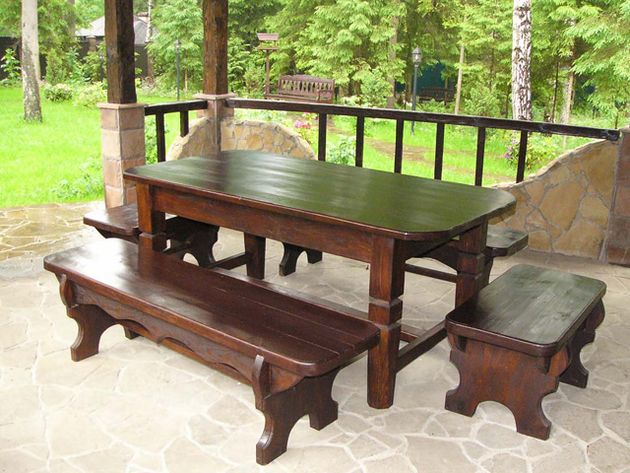 В интернет-магазинах редко предлагают купить отдельный предмет. Чаще всего идут комплекты разных форматов, основой которых является стол, а в дополнение уже идут стулья и/или скамейки. Кстати, помимо скамейки, своими руками из дерева можно сделать стол — об этом мы подробно рассказывали в другой публикации.